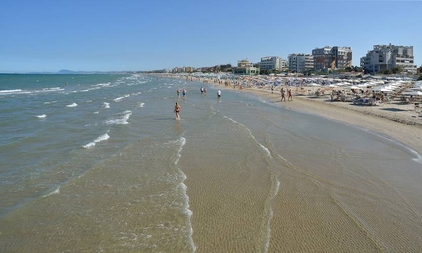 Op minder dan dertig minuten rijden ligt Senigallia, een sfeervol havenstadje met het beroemde La spiaggia di velluto — “het fluwelen strand”. Dit 13 kilometer lange zandstrand loopt langzaam af in zee, waardoor kinderen er veilig kunnen spelen en zwemmen. Langs de boulevard vind je gezellige strandtenten, markten en talloze plekjes om een ijsje te eten of een aperitivo te drinken met uitzicht op zee.