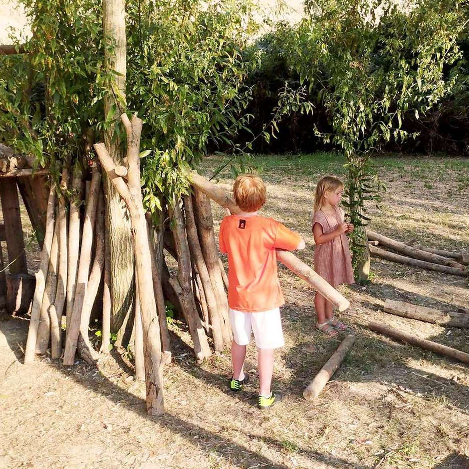 Samen hutten bouwen.