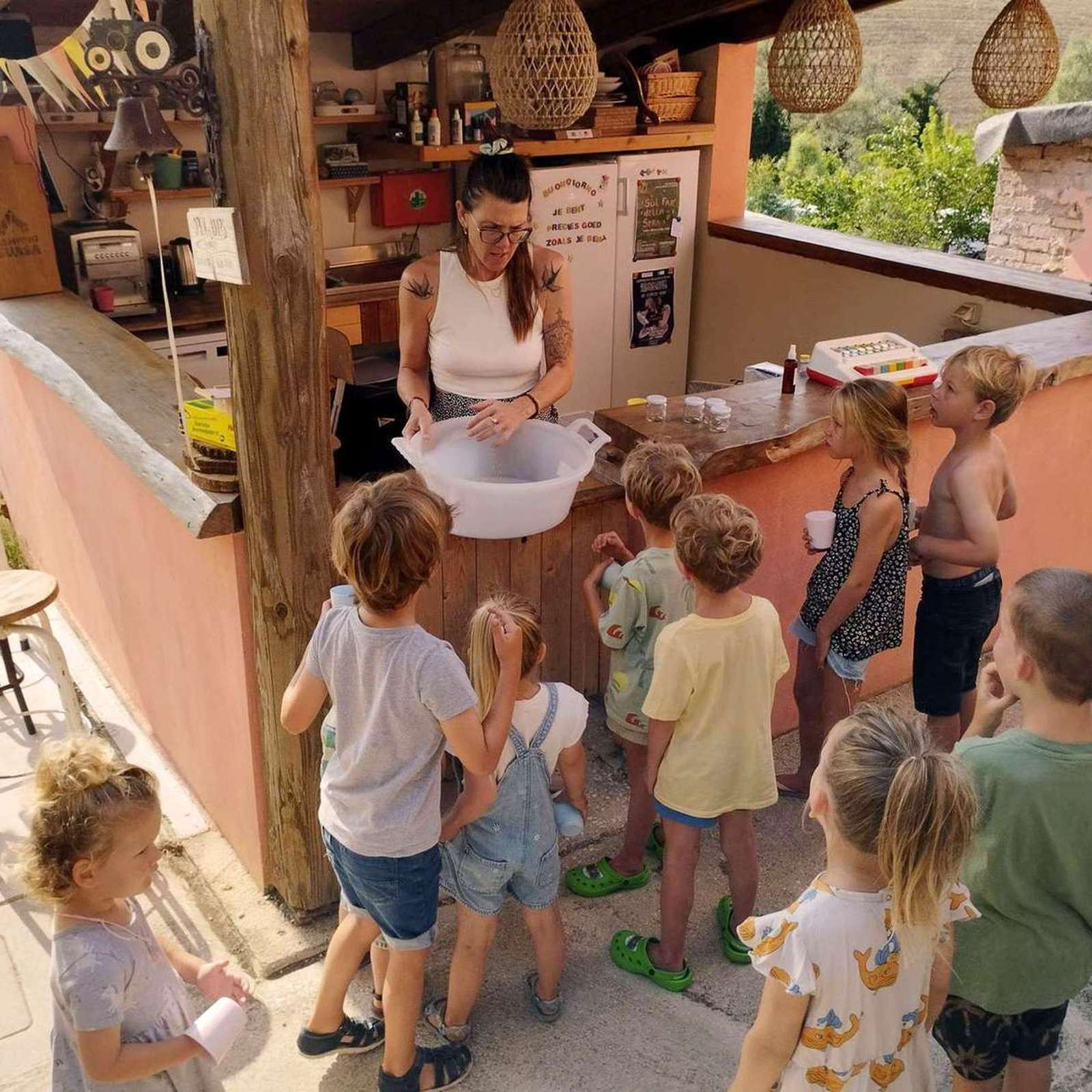 Omdat er maximaal 17 gezinnen zijn, zie je elkaar de hele dag.